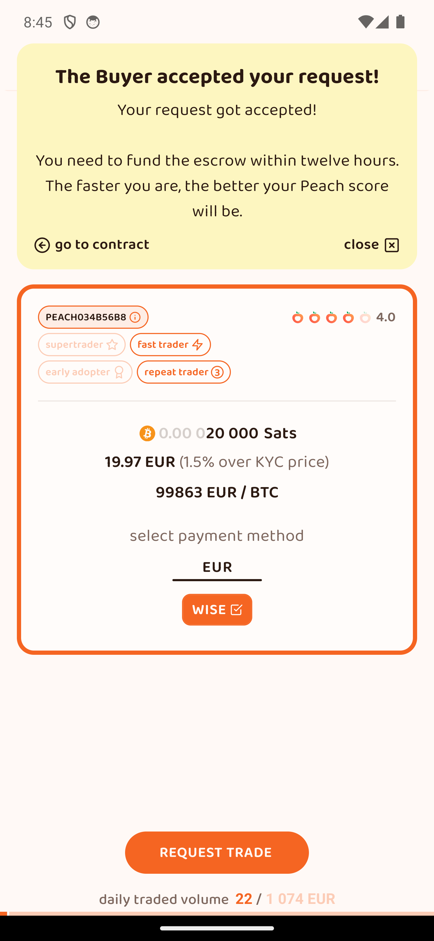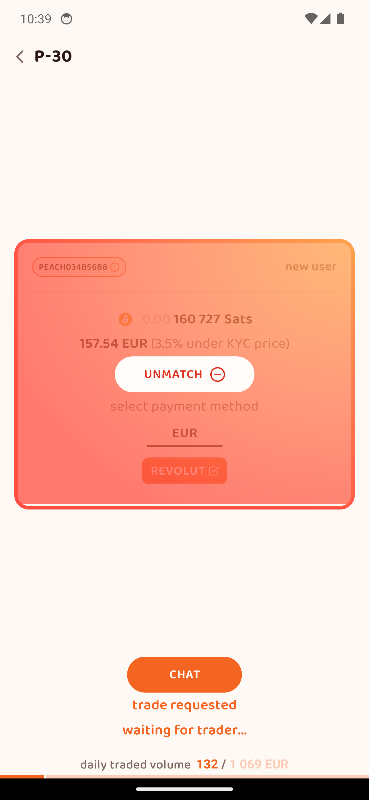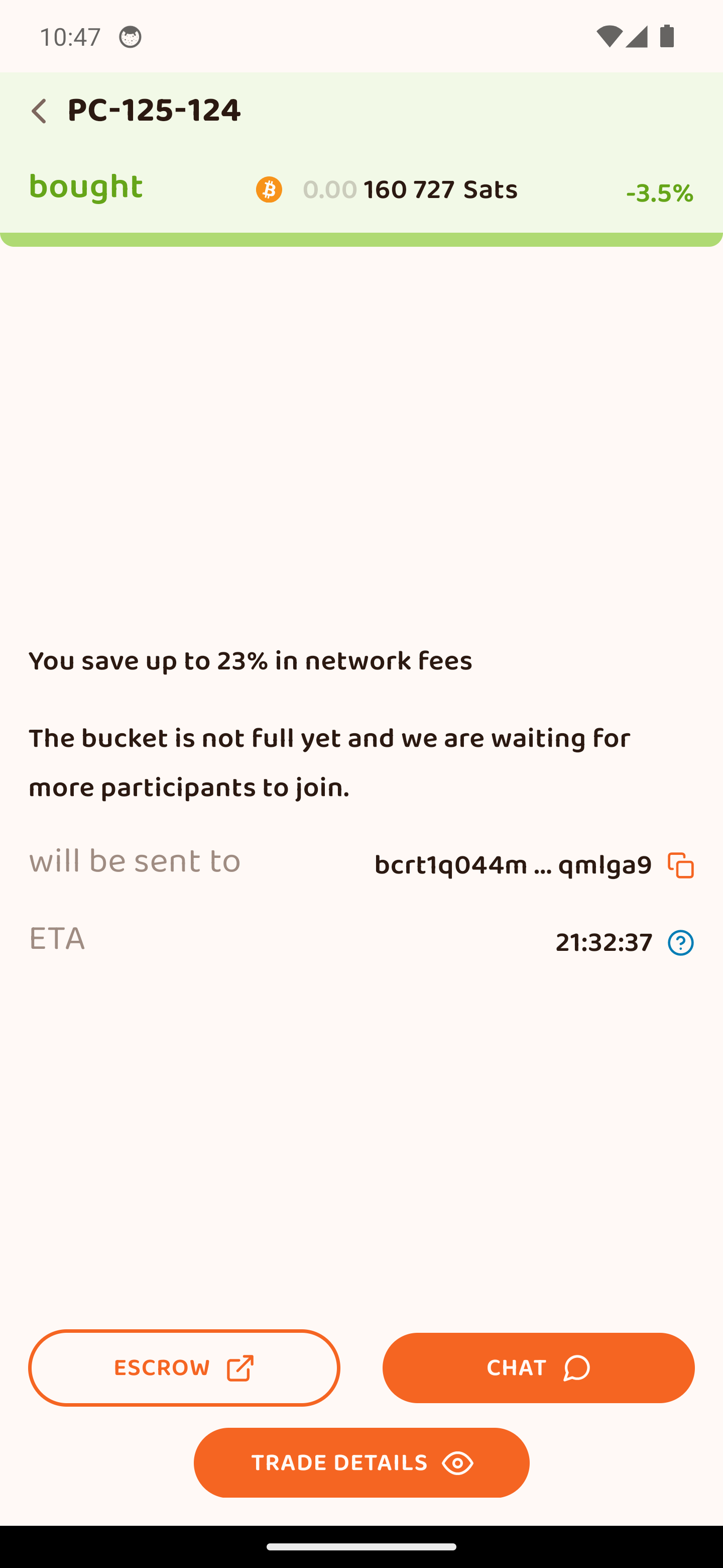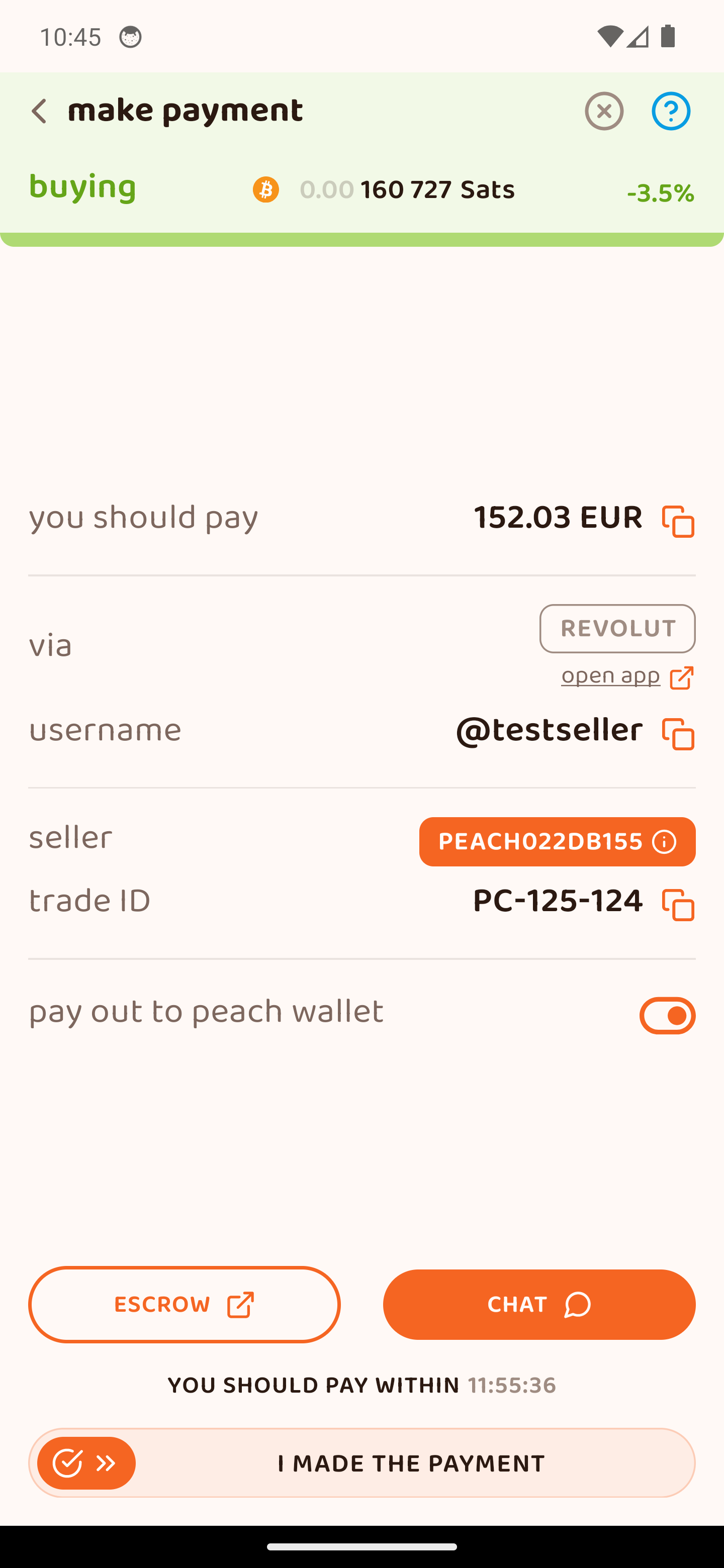 Περίμενε να καταθέσει ο πωλητής τα sats στο 2-2 multisig escrow με το Peach. Έχει 12 ώρες.