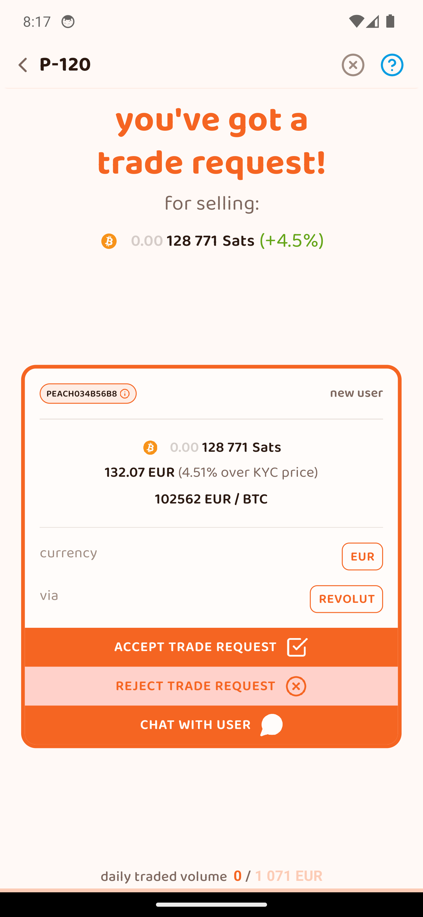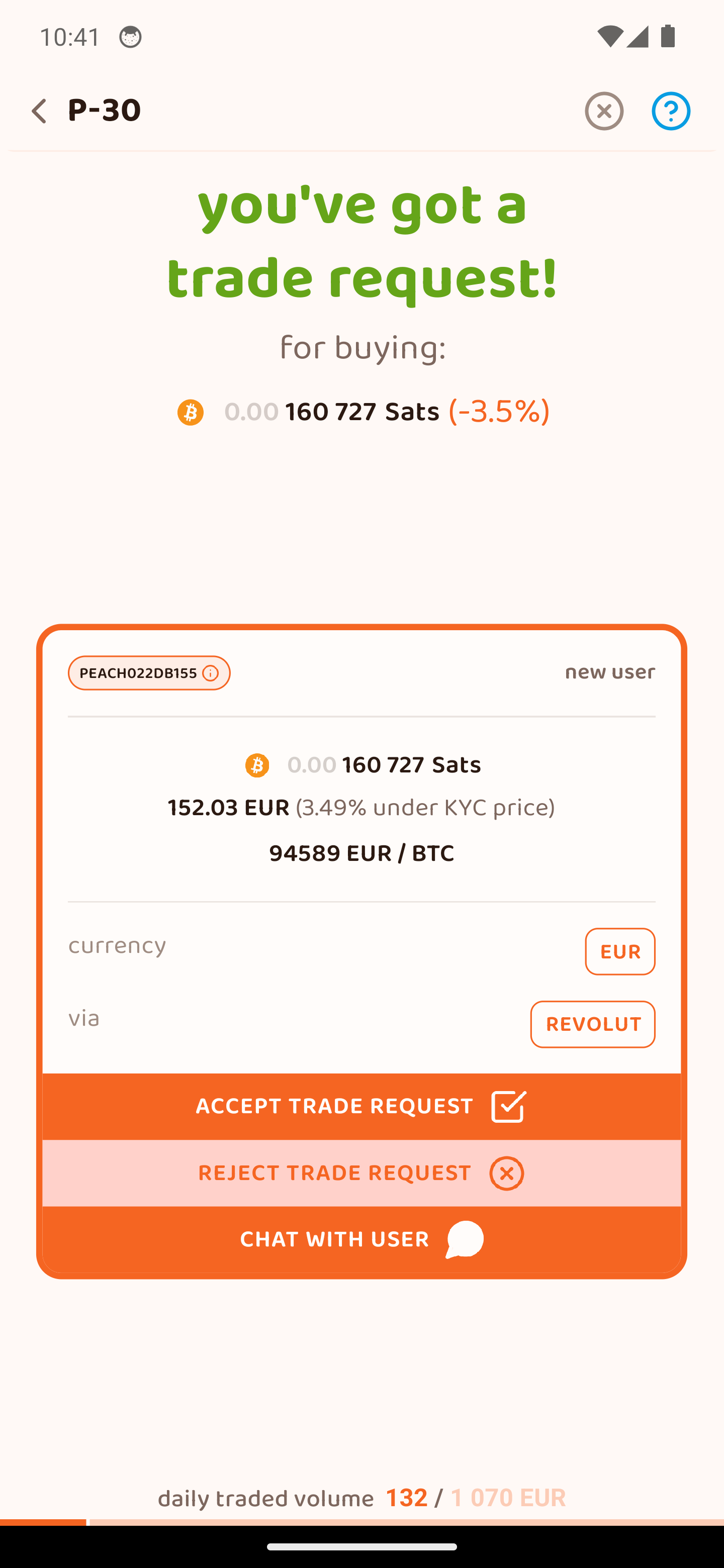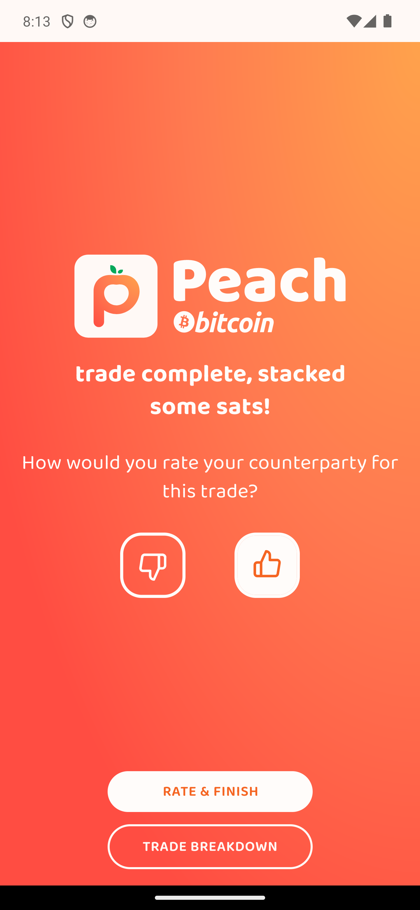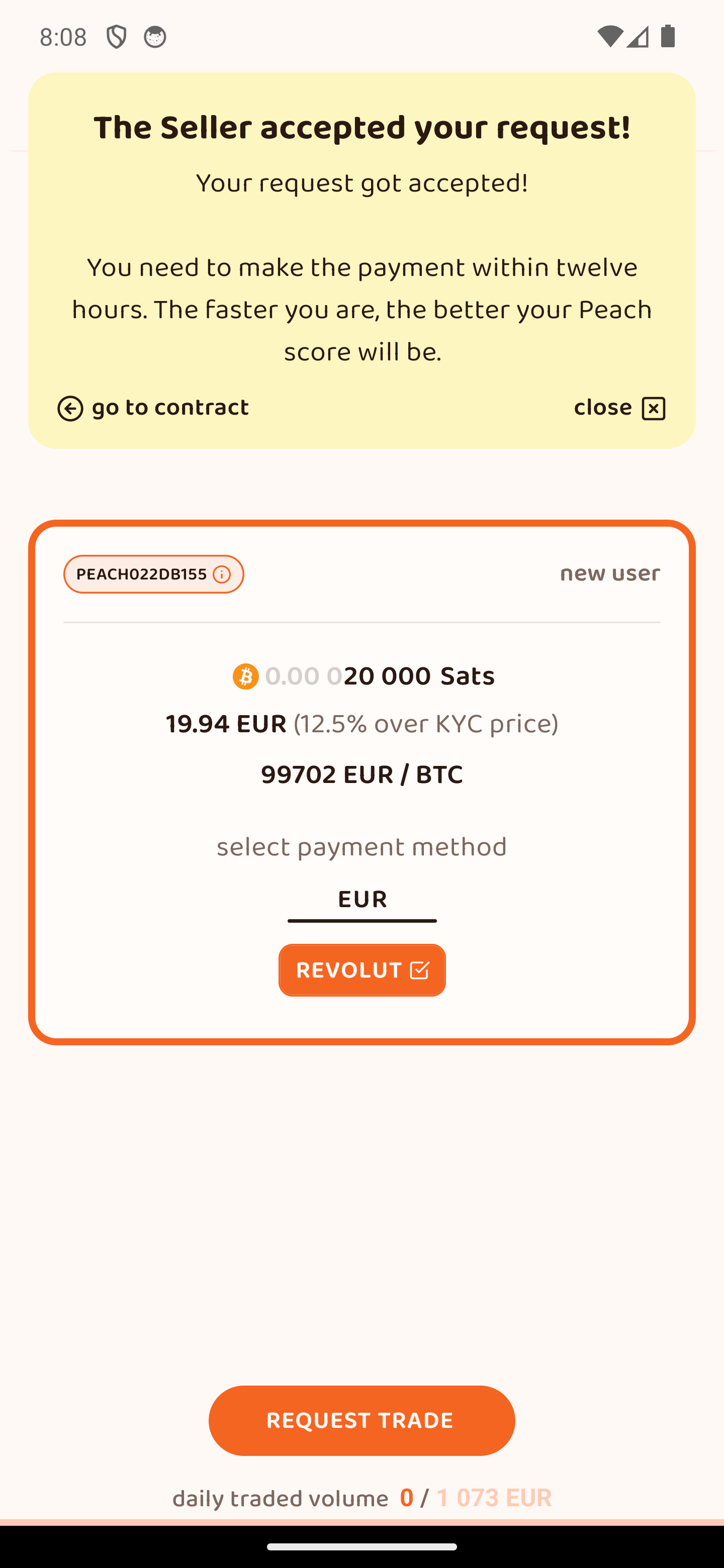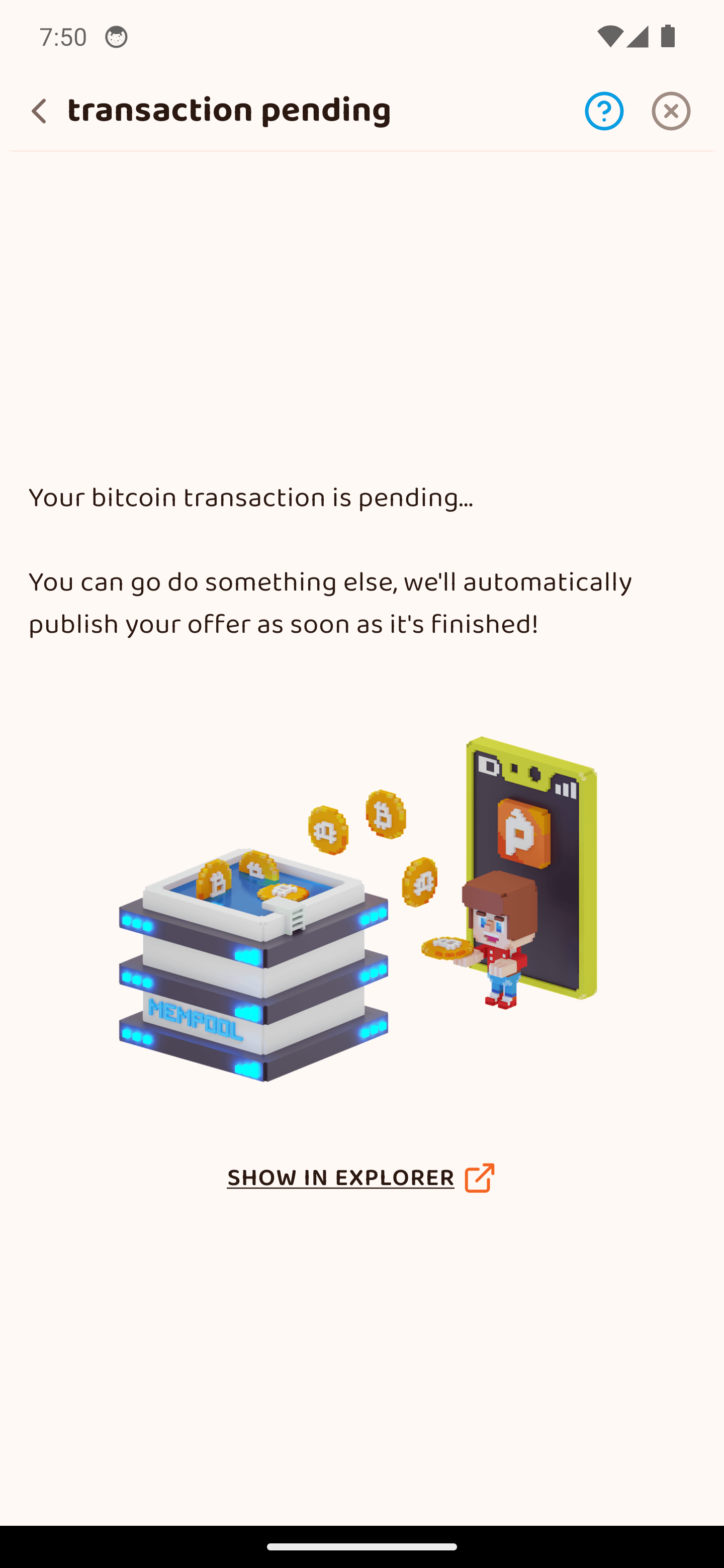 Περίμενε να καταθέσει ο πωλητής τα sats στο 2-2 multisig escrow με το Peach. Έχει 12 ώρες.
