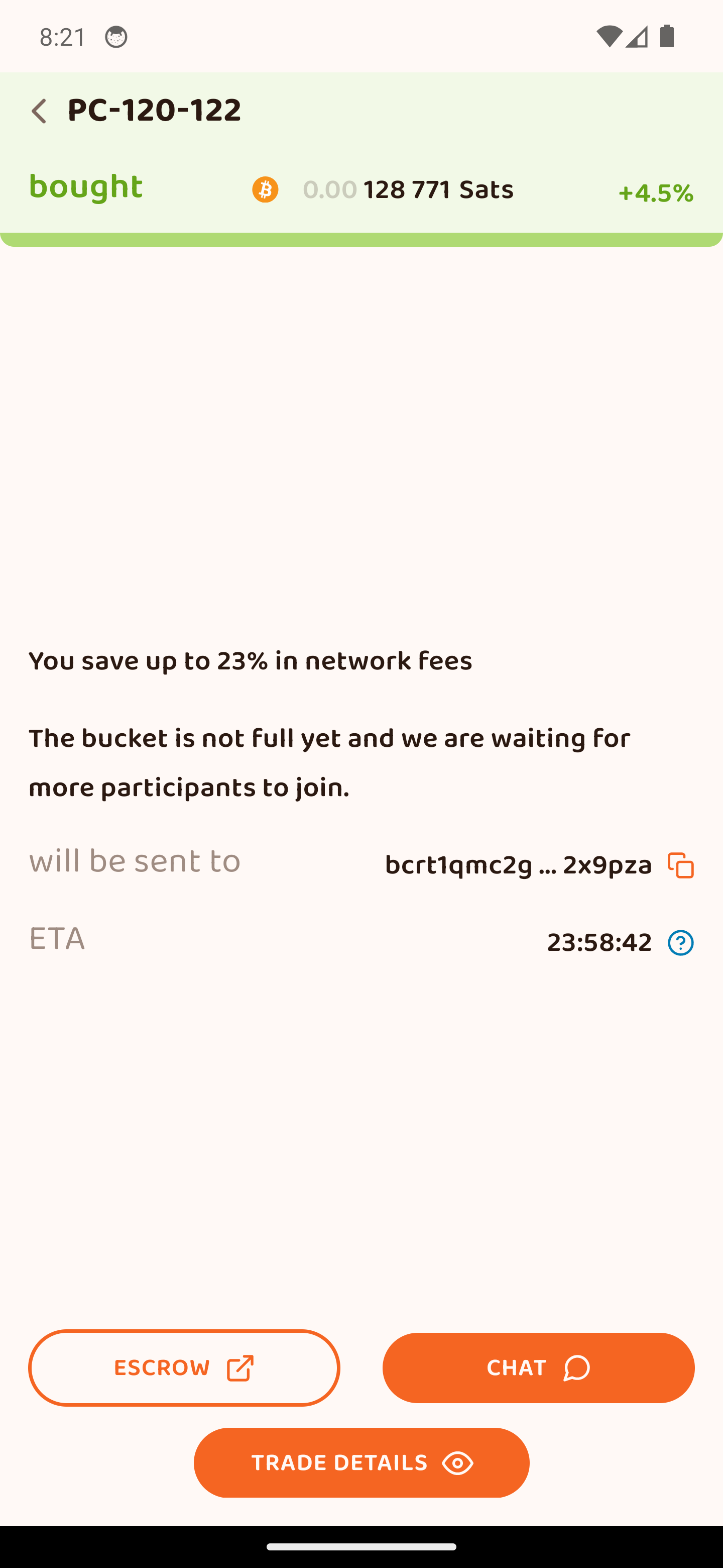 Περίμενε να επιβεβαιώσει ο πωλητής ότι έλαβε την πληρωμή. Τότε απελευθερώνεται το escrow προς εσένα! Οι πληρωμές εκτελούνται ανά 24 ώρες αν έχεις ενεργό το «Batching Transactions» για εξοικονόμηση δικτύου. Μπορείς να το απενεργοποιήσεις (Ρυθμίσεις > Batching Transactions) για άμεση παραλαβή sats.