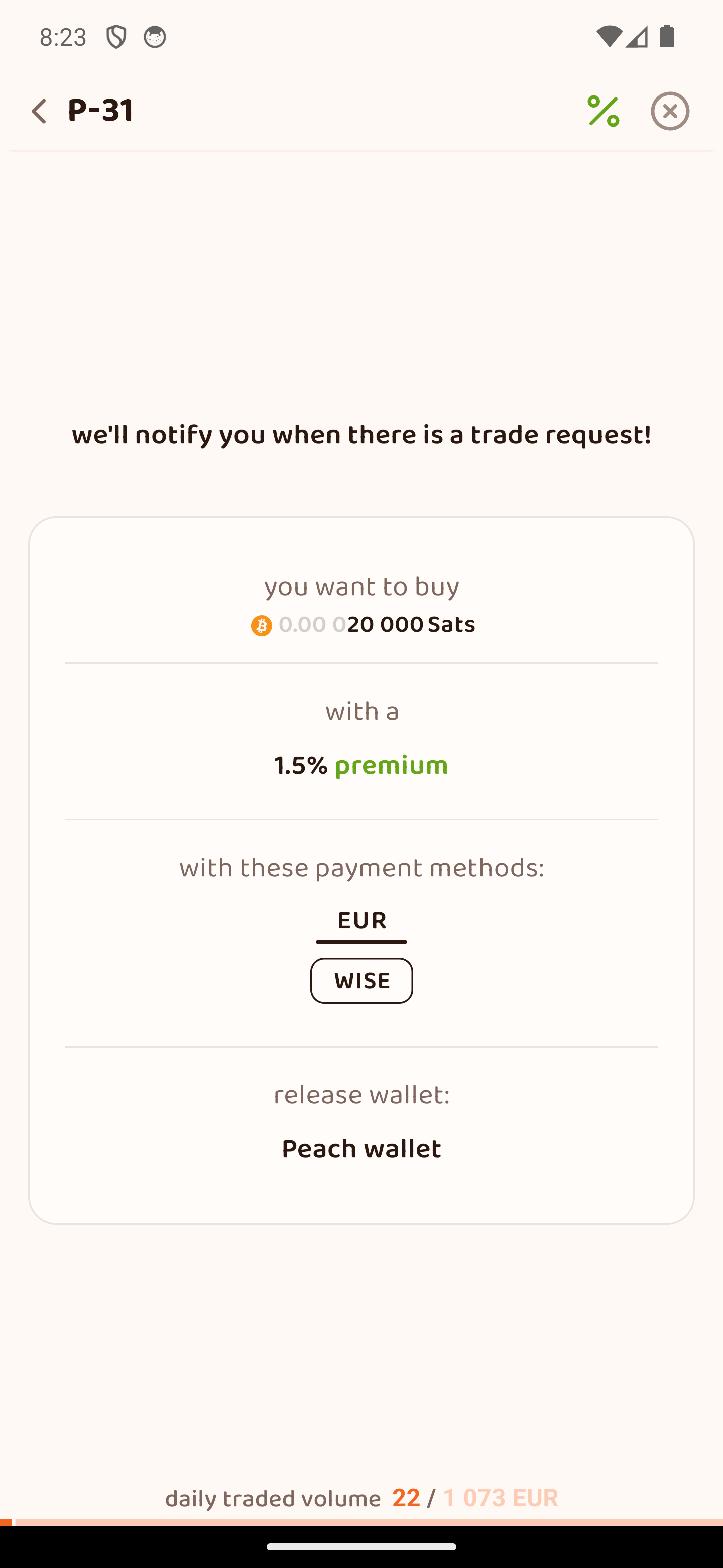 Η προσφορά σου δημοσιεύεται στο Peach P2P marketplace και είναι ορατή στους πωλητές! Θα ειδοποιηθείς όταν κάποιος θέλει να την πάρει!