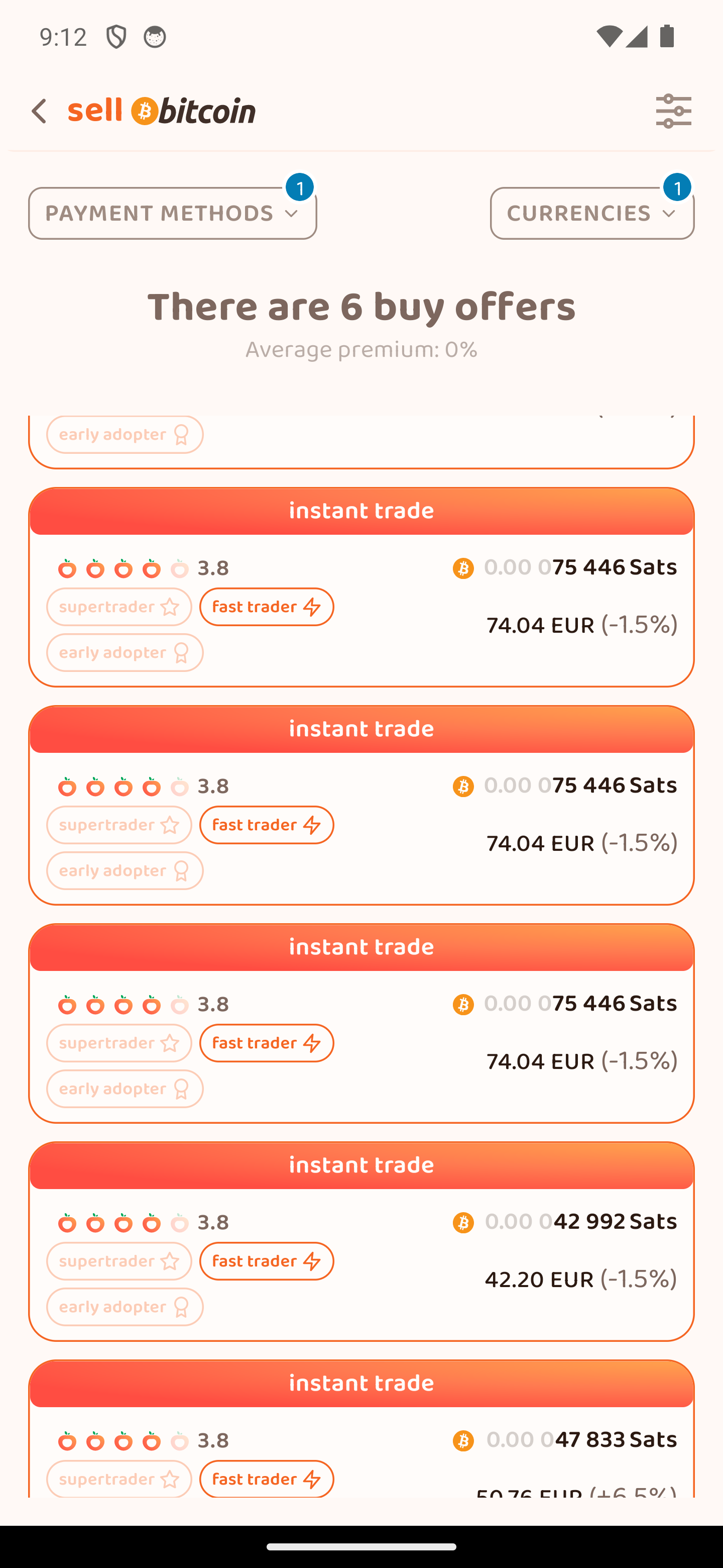Φιλτράρισε ανά νόμισμα και μέθοδο πληρωμής και έλεγξε σκορ φήμης & ιστορικό του χρήστη