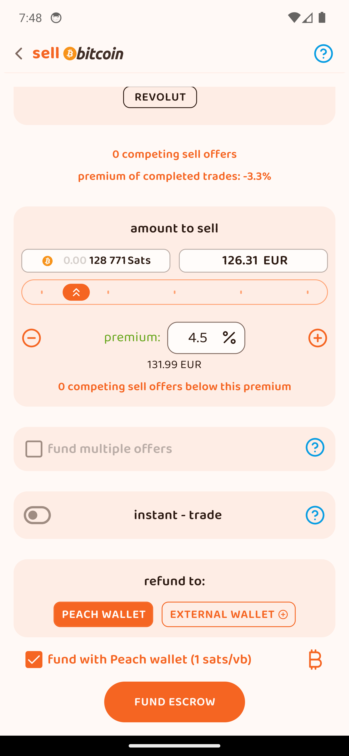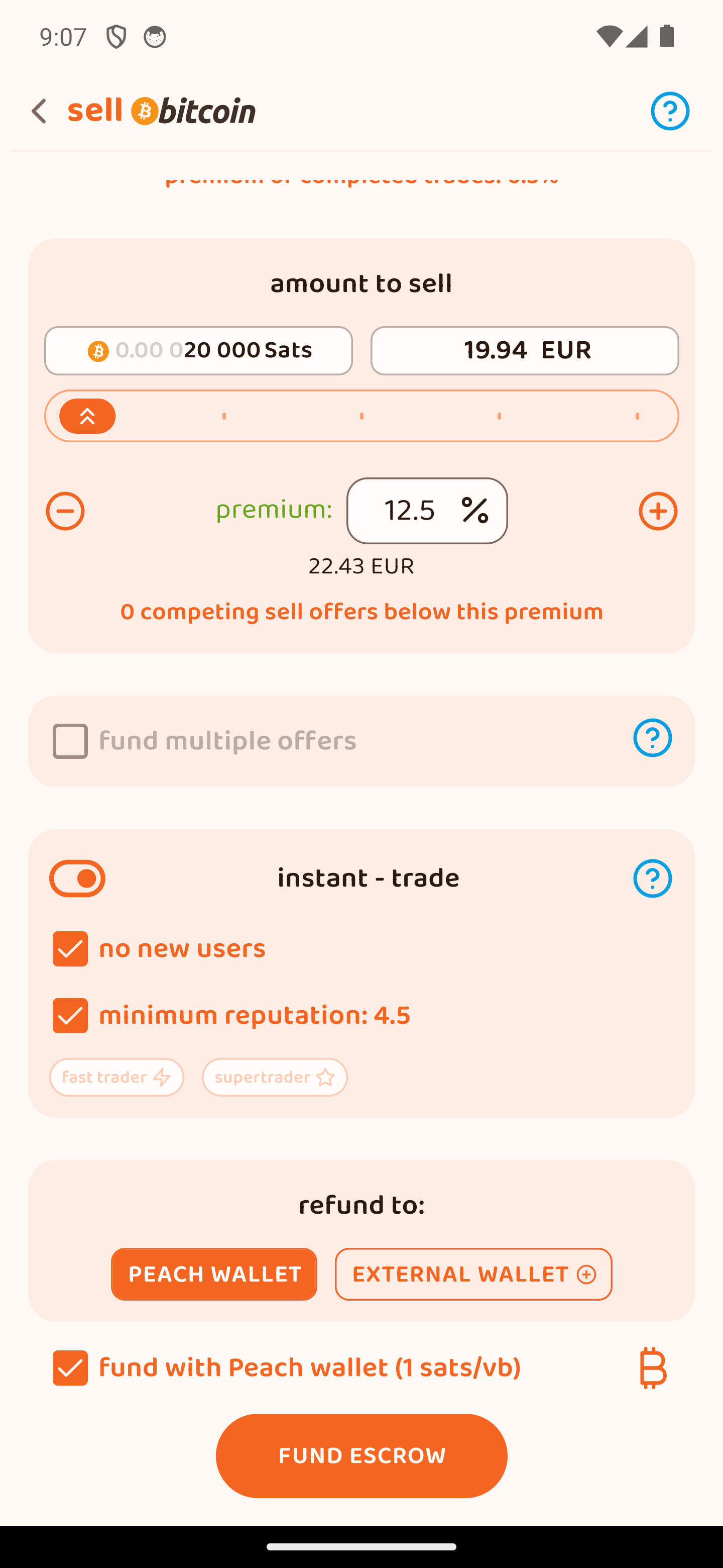 Χρηματοδότησε το 2-2 multisig escrow από το Peach Wallet σου