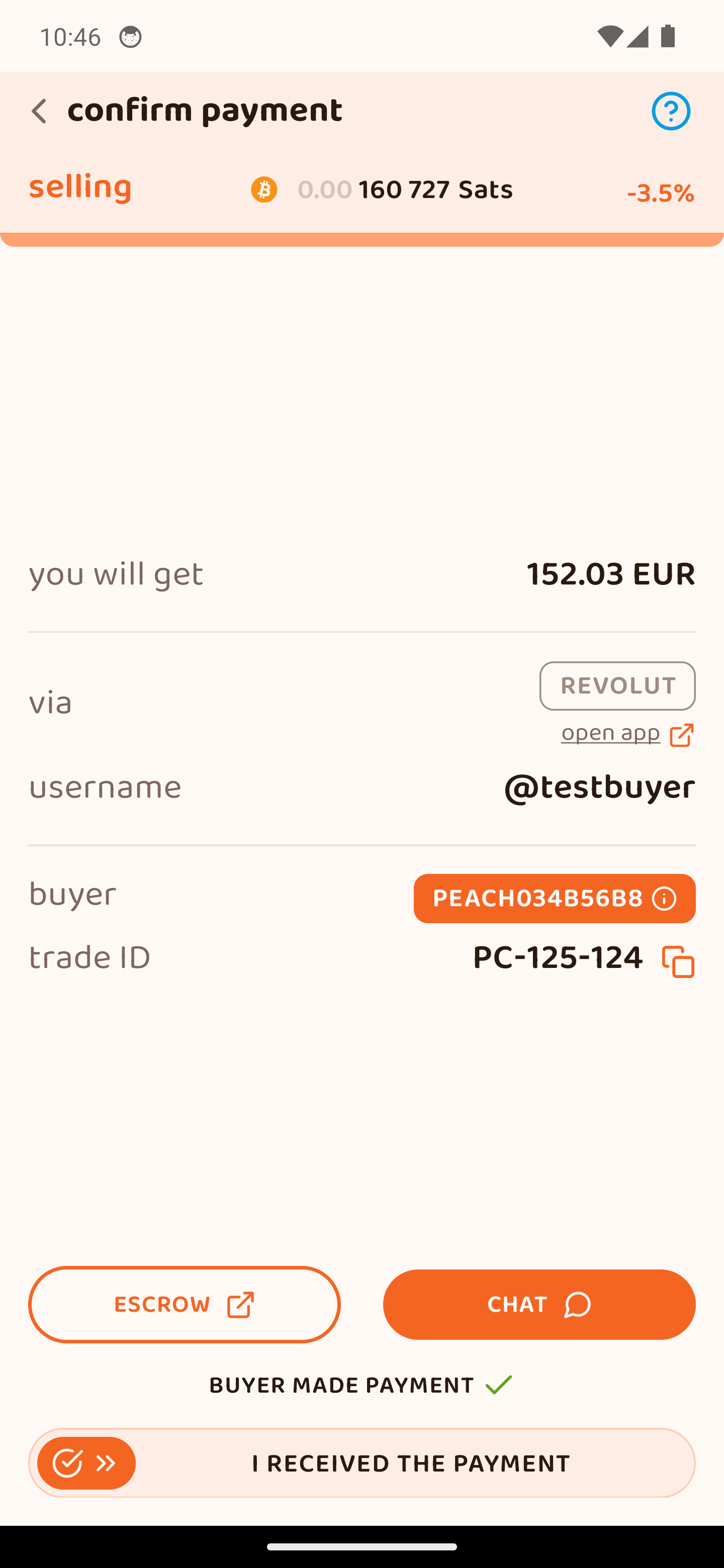 ΕΠΙΒΕΒΑΙΩΣΕ ΜΟΝΟ ΟΤΑΝ λάβεις την πληρωμή στον τραπεζικό/ηλεκτρονικό λογαριασμό σου, σύροντας το «Έλαβα την πληρωμή». ΠΡΟΣΟΧΗ: Η επιβεβαίωση απελευθερώνει τα sats από το escrow στον αγοραστή. Η ενέργεια ΔΕΝ αντιστρέφεται.